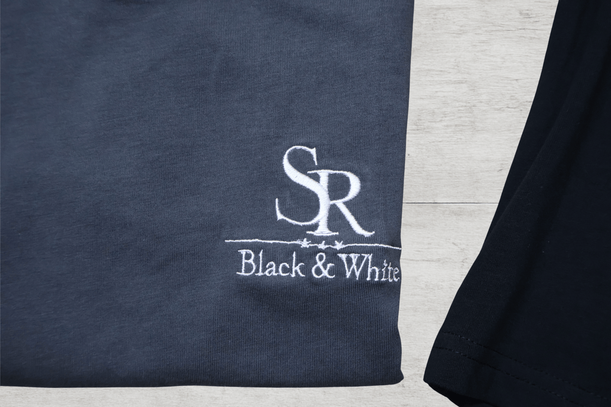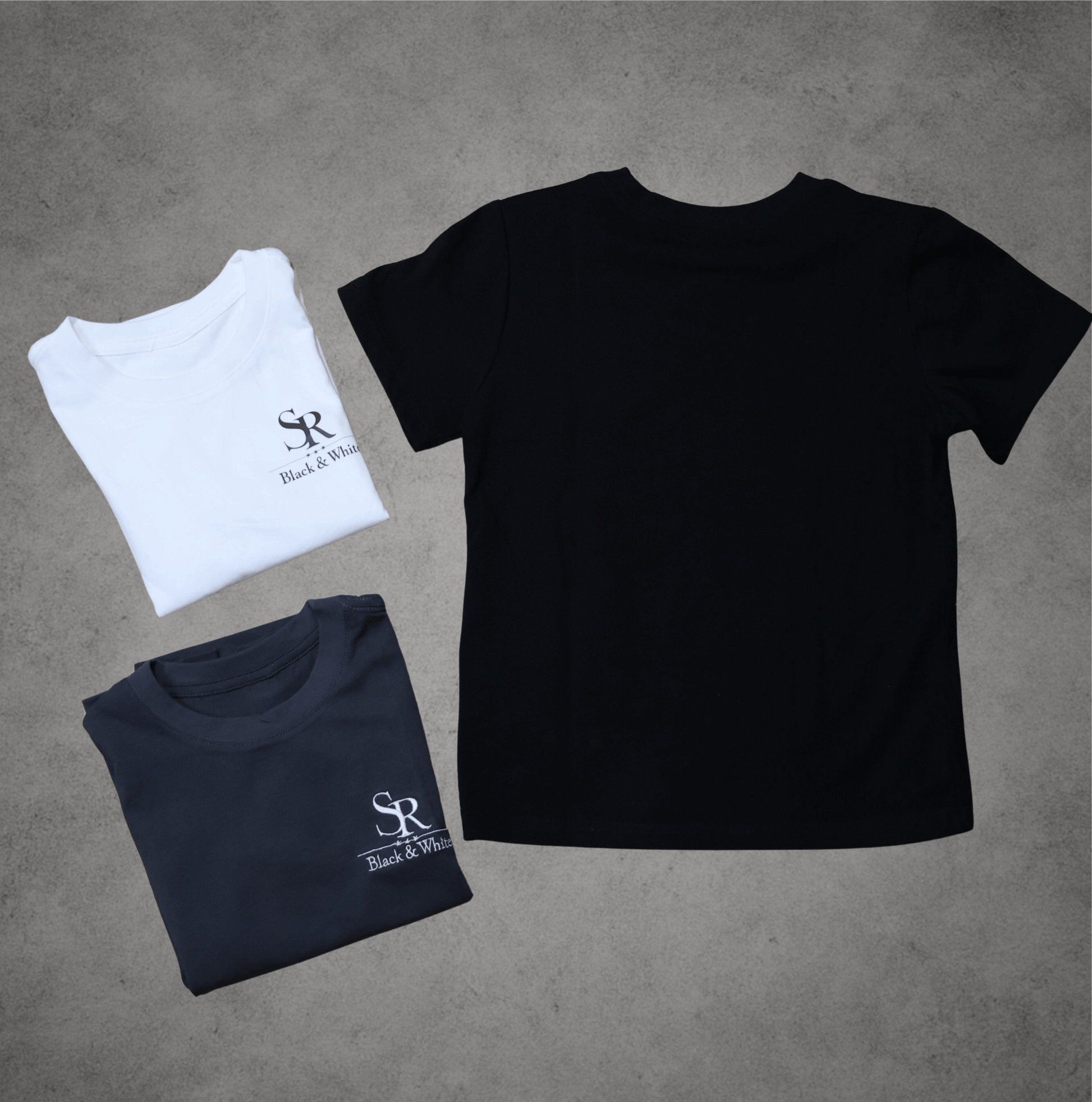 Premium 230gr cotton kids T-shirt with embroidered SR Black & White logo on the chest.