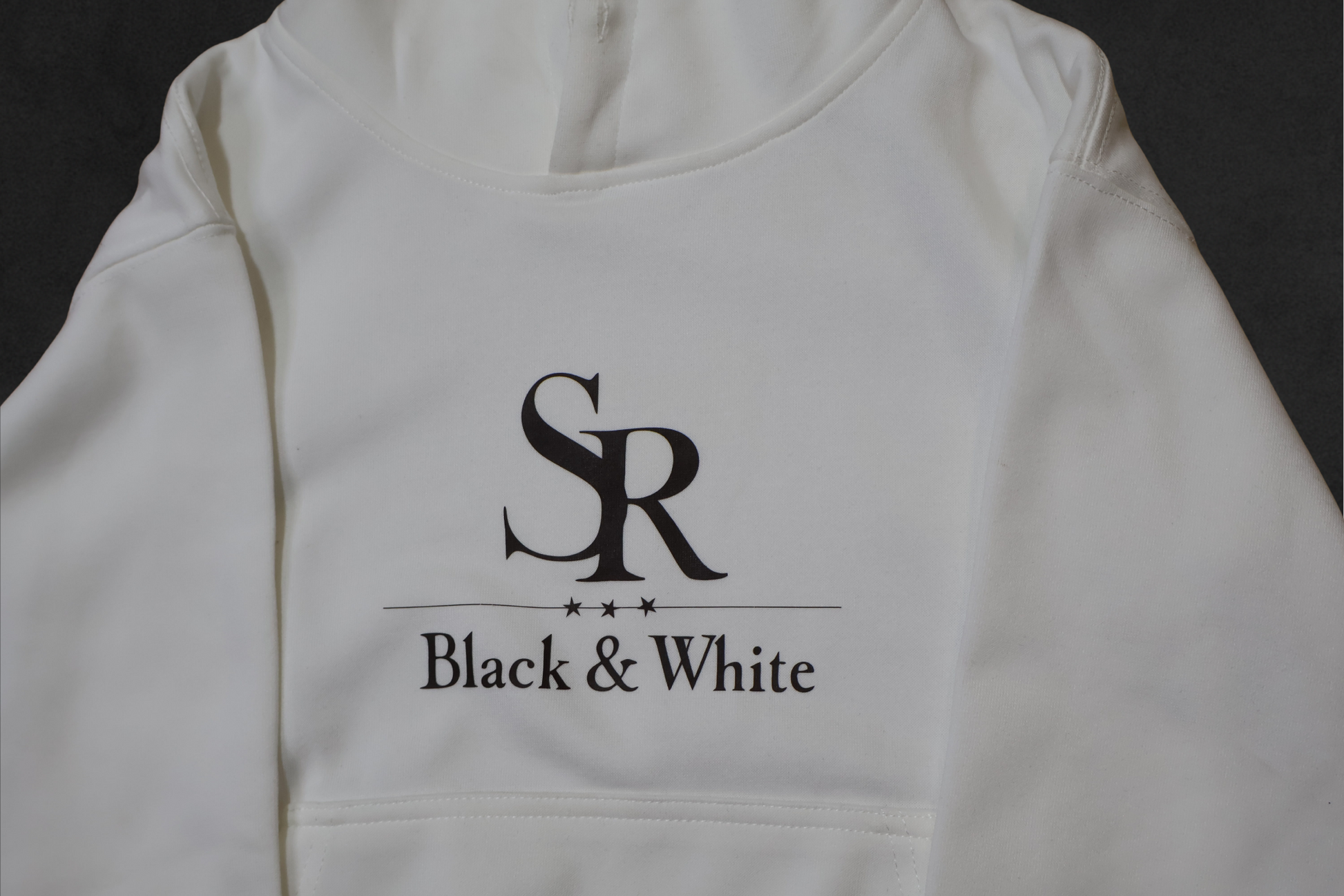 Two-piece tracksuit set for boys and girls, including hoodie and jogger pants. The embroidered SR Black & White logo adds character and minimalist style.